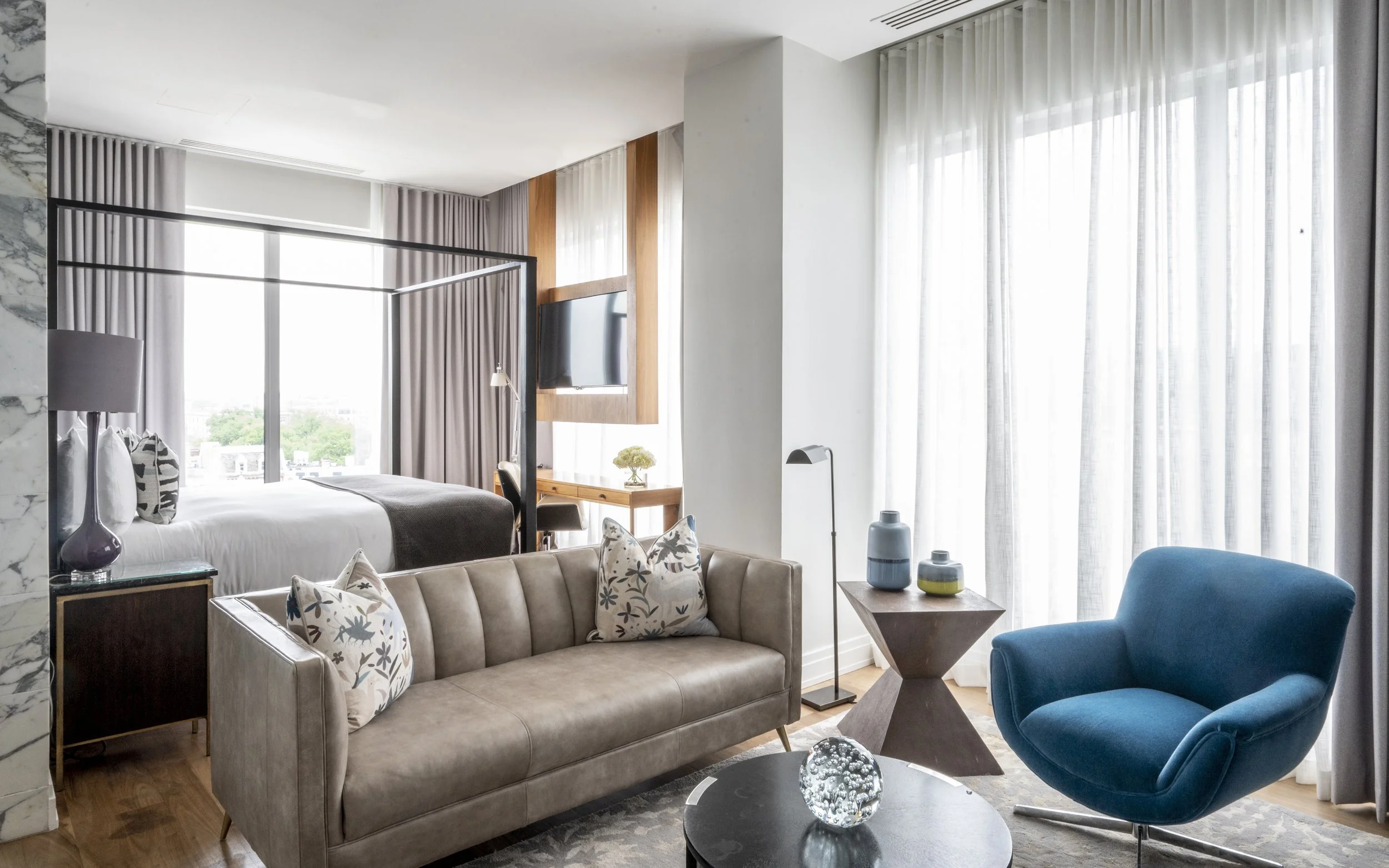 Following a transformative refurbishment in collaboration with world-renowned designers Martin Brudnizki and Clodagh, The Dupont Circle is a luxury hotel that seamlessly weaves contemporary comfort and style with a 1950s aesthetic that pays homage to the building’s mid-century beginnings.